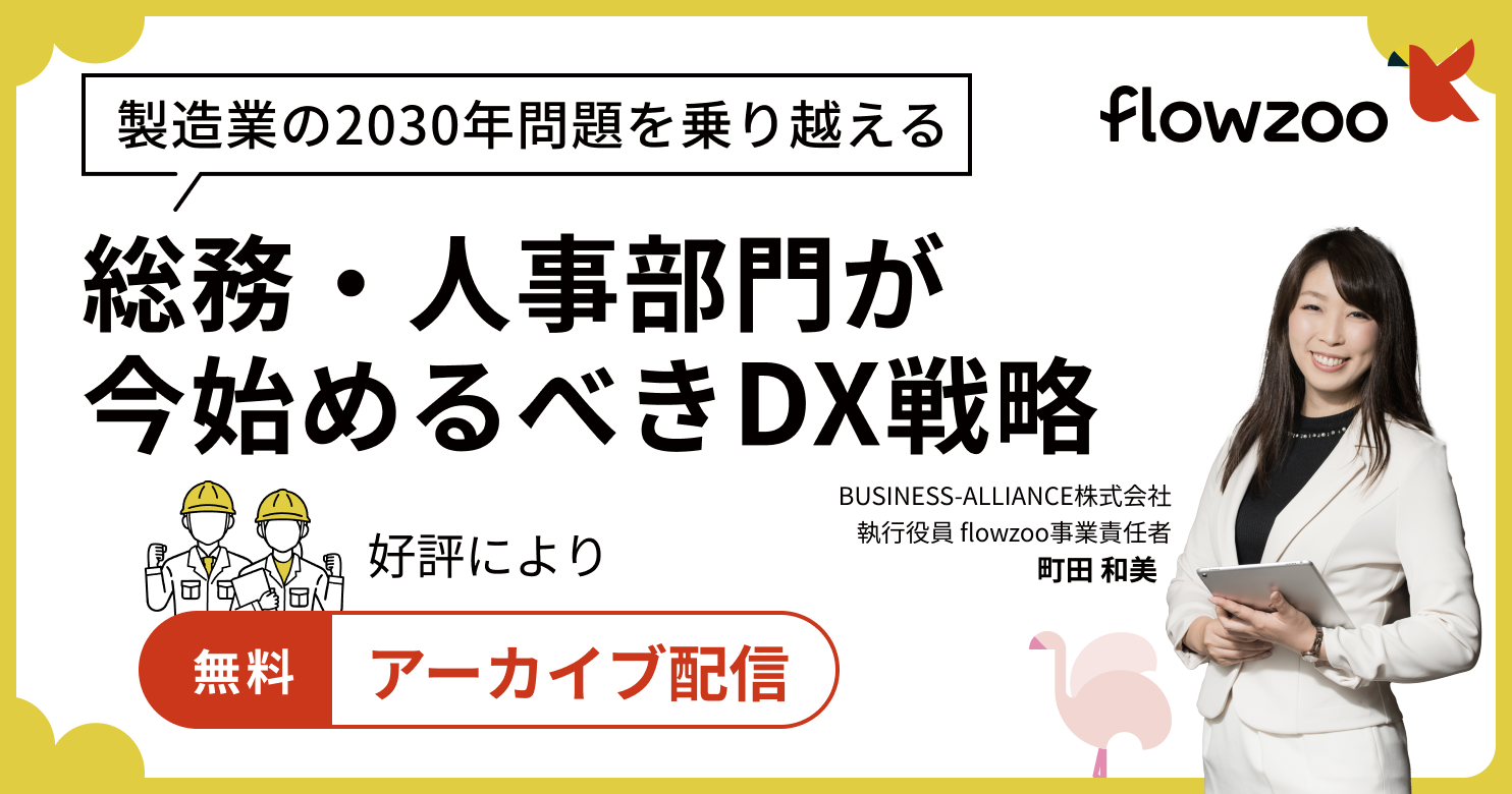 本セミナーでは、この課題を乗り越えるために、総務・人事部門が今すぐ取り組むべきDX戦略に焦点を当てます。具体的には、総務・人事業務の効率化と標準化、技能伝承の仕組みづくりを進めるための実践的なアプローチをお伝えします。